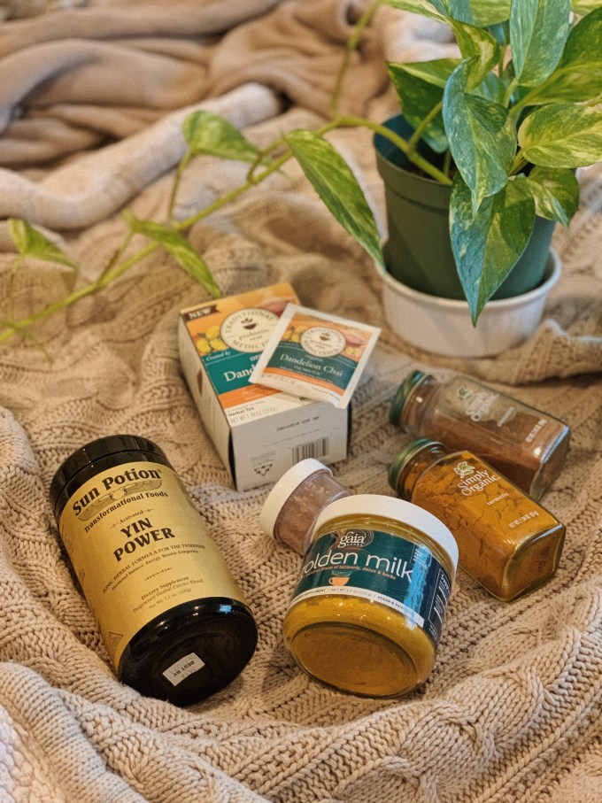 Lately we’ve seen a surge in popularity of adaptogen elixirs as coffee substitutes– teas, hot cocoas, and elixirs doused with Lion’s Mane, Chaga, Reishi, Ashwagandha, Cacao, Cordyceps, the list goes on. Some familiar players in the adaptogen game are Four Sigmatic, Moon Juice, and Sun Potion. This week MUDWTR, a new contender in the arena, has caught my attention. Their recipe calls for all the above ingredients plus Masala Chai, Turmeric, Sea Salt, and Cinnamon. The starter pack arrives in a sleek black packaging and even includes a free electronic frother. But before I hit “purchase” on my monthly subscription box, I probe around in my health foods basket at home and fish out the ingredients I already have.
